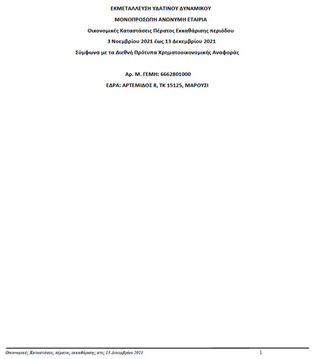 Για να κατεβάσετε τις Οικονομικές Καταστάσεις Πέρατος Εκκαθάρισης πατήστε εδώ